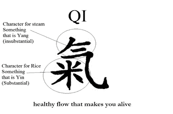 The Chinese character for Qigong represents heated rice releasing steam, energy, life energy, i.e. Qi. Qigong movements stimulate the circulation of your life energy, your Qi.